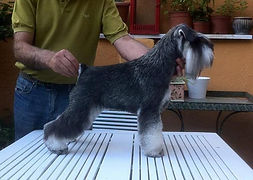 schnauzer miniatura mide 30-36 cm a la cruz y pesa 5,4-9 kilos.